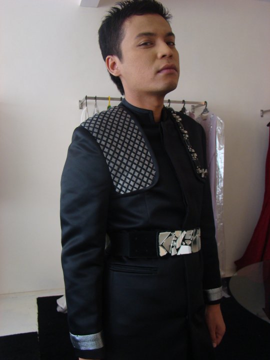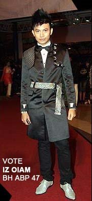 Iz Suliani in this songket trench by Hatta Dolmat. Trench coat ini telah memenangi kategori pakaian terbaik pilihan juri didalam Anugerah Bintang Popular 2008.
